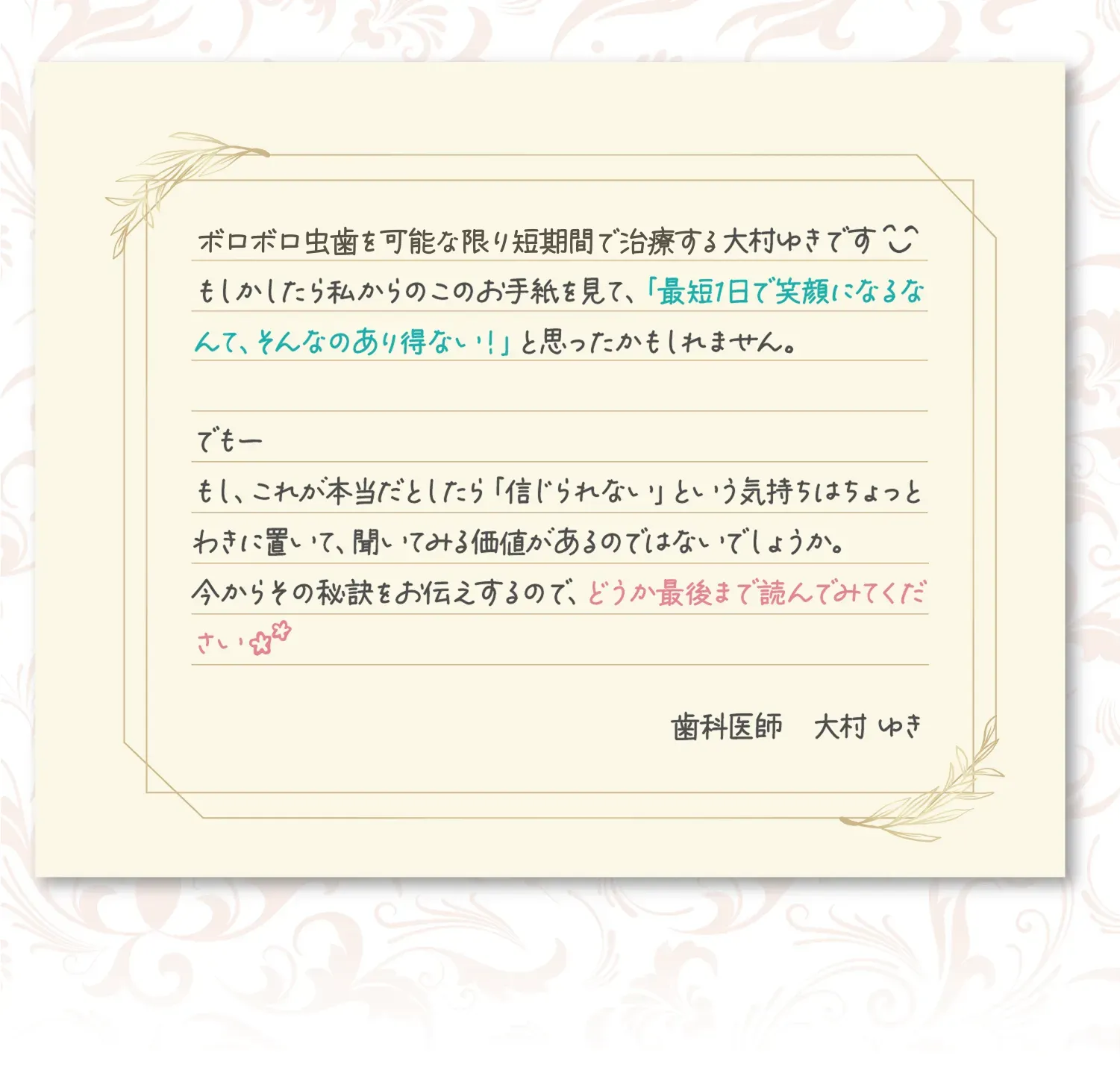 ここまでお読みいただいた方は、本当に「歯をきれいに治したい」という強い気持ちをお持ちの人だけだと思います。